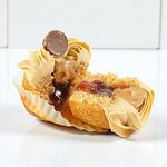Peanut butter cake base – 1 pc (light, moist, nutty flavor) Jam filling – 20 g (strawberry or mixed berry jam center) Peanut butter frosting – 20 g (smooth, creamy topping) Chocolate peanut garnish – 1 pc
