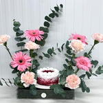 Red velvet cake with flowers arrangement