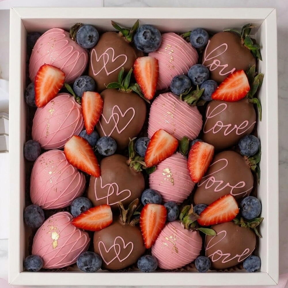 Surprise your loved ones with a beautiful and delicious gift box filled with premium chocolate covered strawberries. Each strawberry is carefully selected and hand-dipped in smooth milk and pink chocolate, creating a perfect combination of elegance and flavor. This romantic gift box is decorated with fresh strawberry slices and blueberries, making it not only a sweet treat but also a stunning visual gift for special moments. Perfect for: • Romantic surprises • Birthdays • Anniversaries • Valentine’s Day • Special celebrations Product details: • Fresh strawberries covered with premium chocolate • Elegant pink and milk chocolate decoration • “Love” design for a romantic touch • Fresh berries for decoration • Stylish gift box presentation Each box is prepared fresh after your order to ensure the best taste and quality. Make someone’s day sweeter with this luxury chocolate covered strawberries gift box. 💝🍓