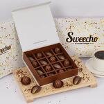 Brand - Sweecho, Type - Milk Chocolate, Chocolate Ramitta Stuffed with Cracked Feuilletine and Cinnamon - 8 Pcs, Chocolate Shiny Stuffed with Caramel and Almond - 8 Pcs, Allergens - Nuts and Milk, Arranged in a Beautiful Gift Box.