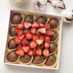 A delectable box of 16 juicy strawberries, generously coated in rich milk chocolate and complemented by slices of fresh strawberries for a vibrant touch. This box is a perfect blend of indulgence and freshness, ideal for gifting or savoring yourself!