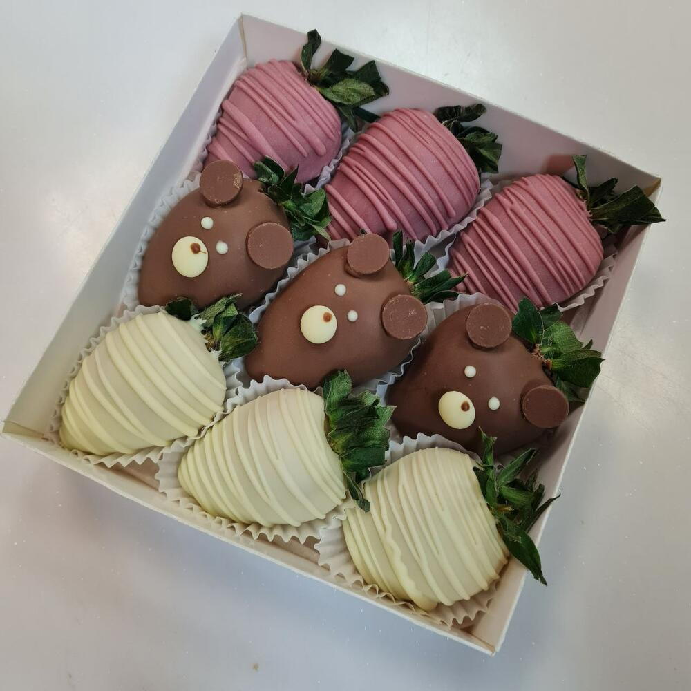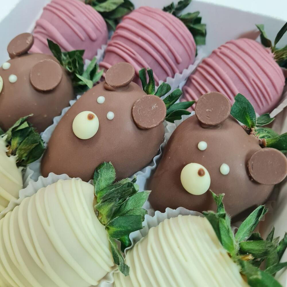 Strawberry chocolate with teddy bear pattern