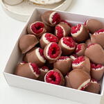 ✨ Return to childhood with raspberries in double chocolate! ✨ Remember the taste of Kinder? 😋 Now this magic is available in every berry! Fresh, juicy raspberries covered in delicate white and milk chocolate create a unique combination of flavors that will take you back to a carefree childhood. This is an ideal little gift or a nice compliment for a loved one who will appreciate the taste of real happiness! 💖 Treat your loved ones and yourself with this sweet miracle!