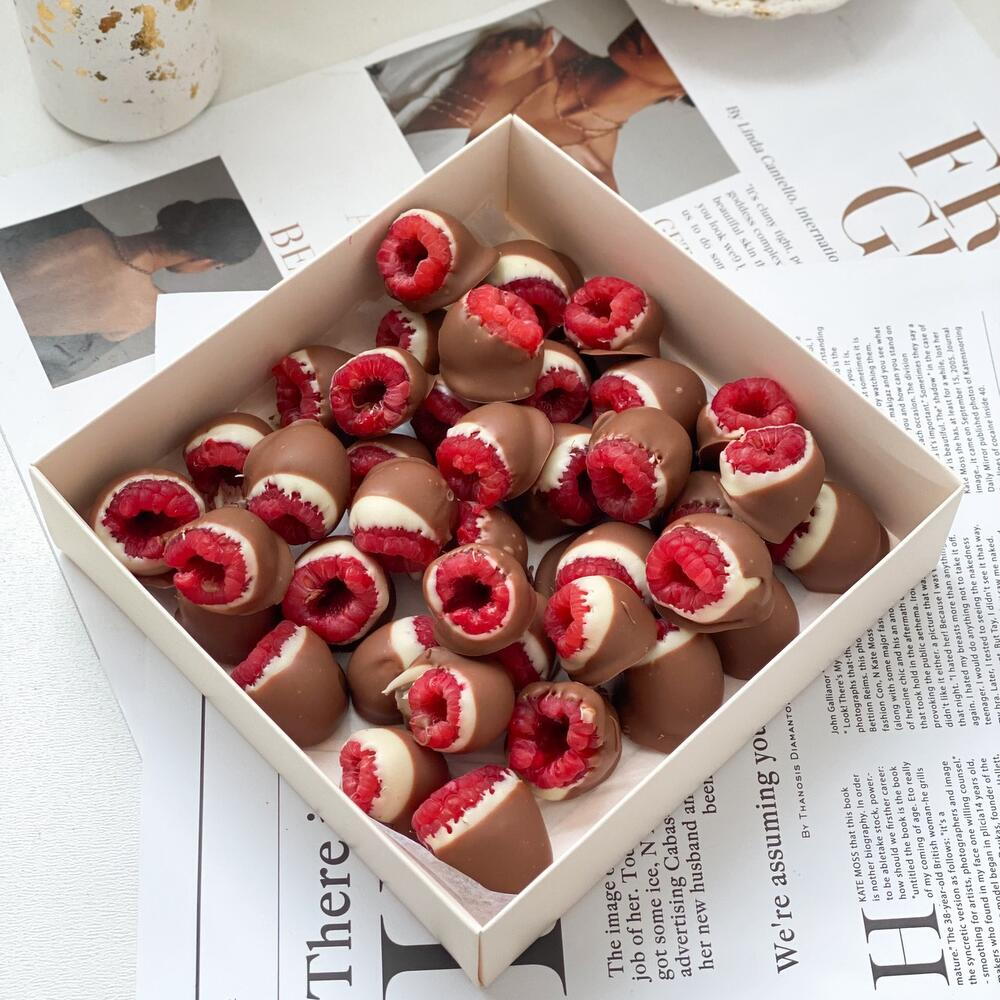 ✨ Return to childhood with raspberries in double chocolate! ✨ Remember the taste of Kinder? 😋 Now this magic is available in every berry! Fresh, juicy raspberries covered in delicate white and milk chocolate create a unique combination of flavors that will take you back to a carefree childhood. This is an ideal little gift or a nice compliment for a loved one who will appreciate the taste of real happiness! 💖 Treat your loved ones and yourself with this sweet miracle!