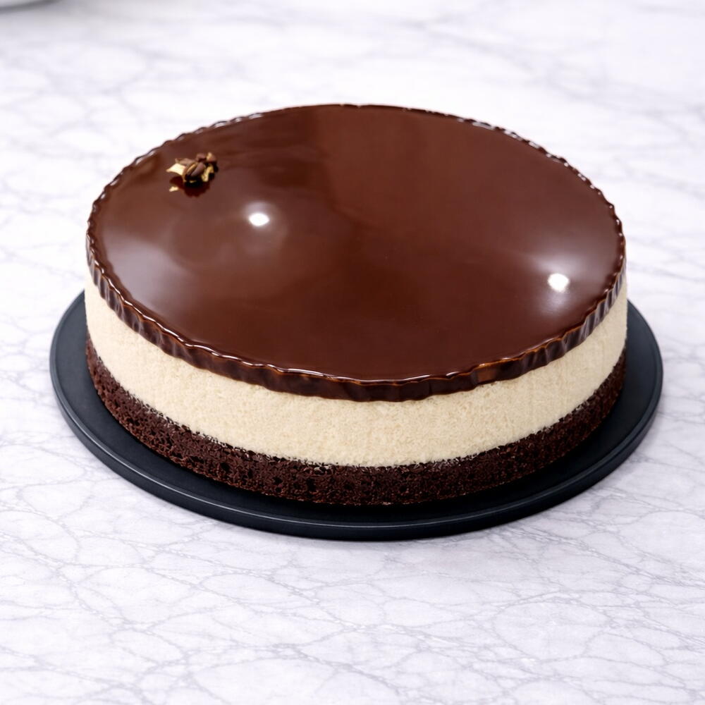 A light and creamy mousse cake inspired by V60 coffee, layered with a dark cocoa sponge base and finished with a smooth chocolate glaze. The delicate coffee notes blend perfectly with the airy mousse, creating a balanced, elegant dessert that is rich in flavor yet soft and refined in texture.