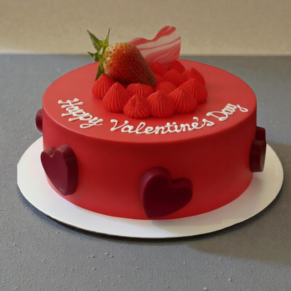 Red velvet cake layered with cream cheese frosting and finishing with hearts