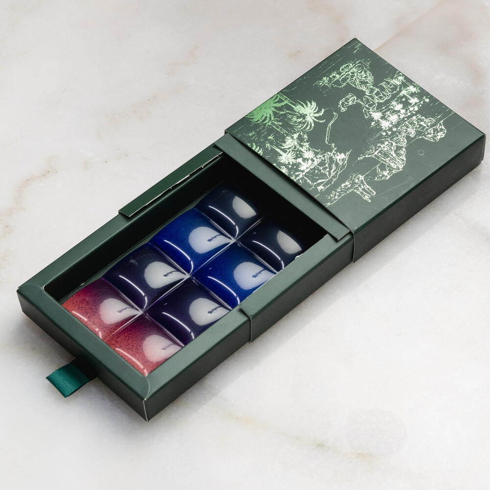 -Premiem milk chocolate -Ganache pecan red fruit -Colored cocoa butter