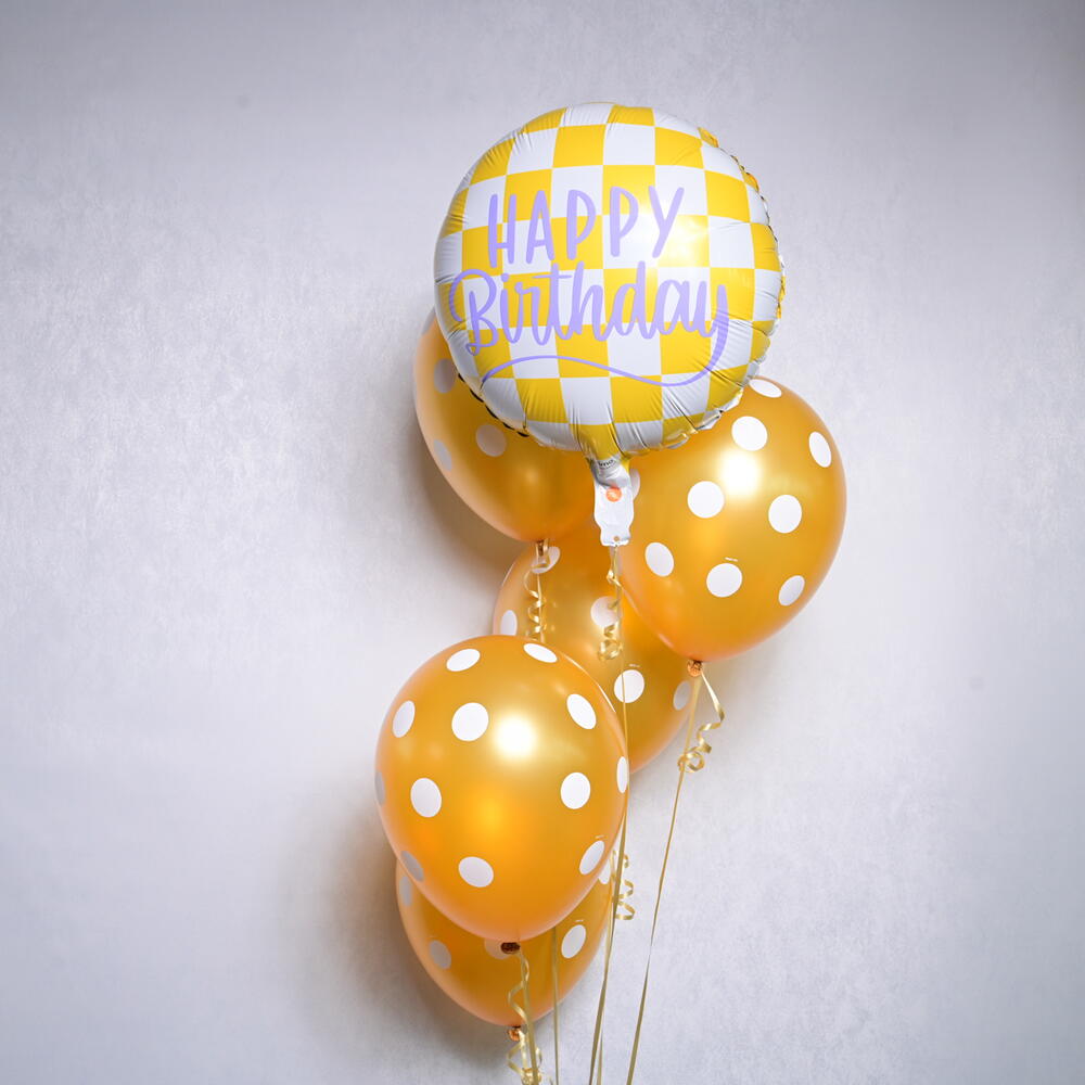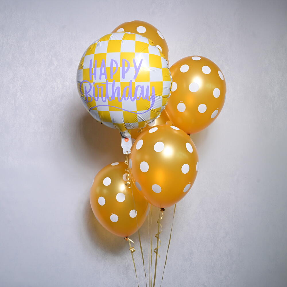 Celebrate in style with our 1 Birthday Foil Balloon and 6 Golden Polka Dots Balloons. This perfect combination adds elegance and festive cheer to any birthday celebration, with the vibrant foil balloon sending birthday wishes and the golden polka dot balloons bringing a touch of sophistication to the occasion. At Fellora Flower Boutique, we provide high-quality balloons to enhance your celebrations and make every moment memorable.