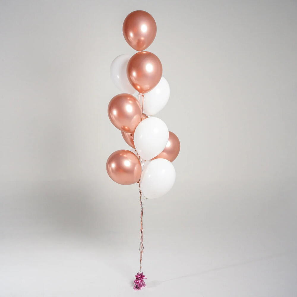 Chrome Rose Gold and White Chrome Balloons Quantity : 10 Material : Latex Depending upon placement Balloons will stay afloat upto 8 Hours