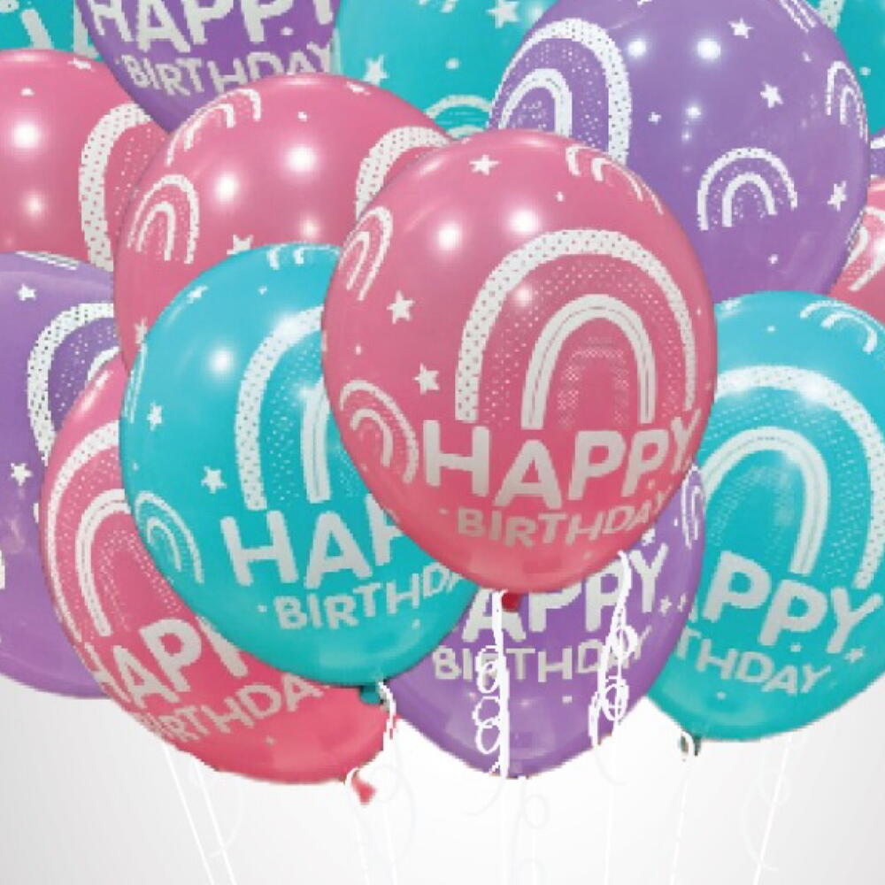 15 pcs helium filled latex balloon set with happy birthday greetings Note : helium will last up to 6 to 7 hours