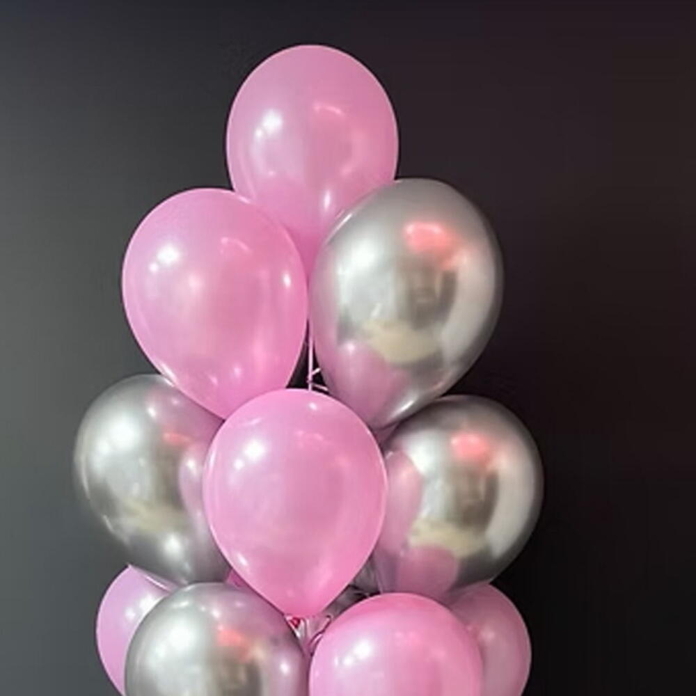 15 pcs Mixed balloons with helium Includes Pink Silver Floating time will be 6-8 hrs depeds on temperature
