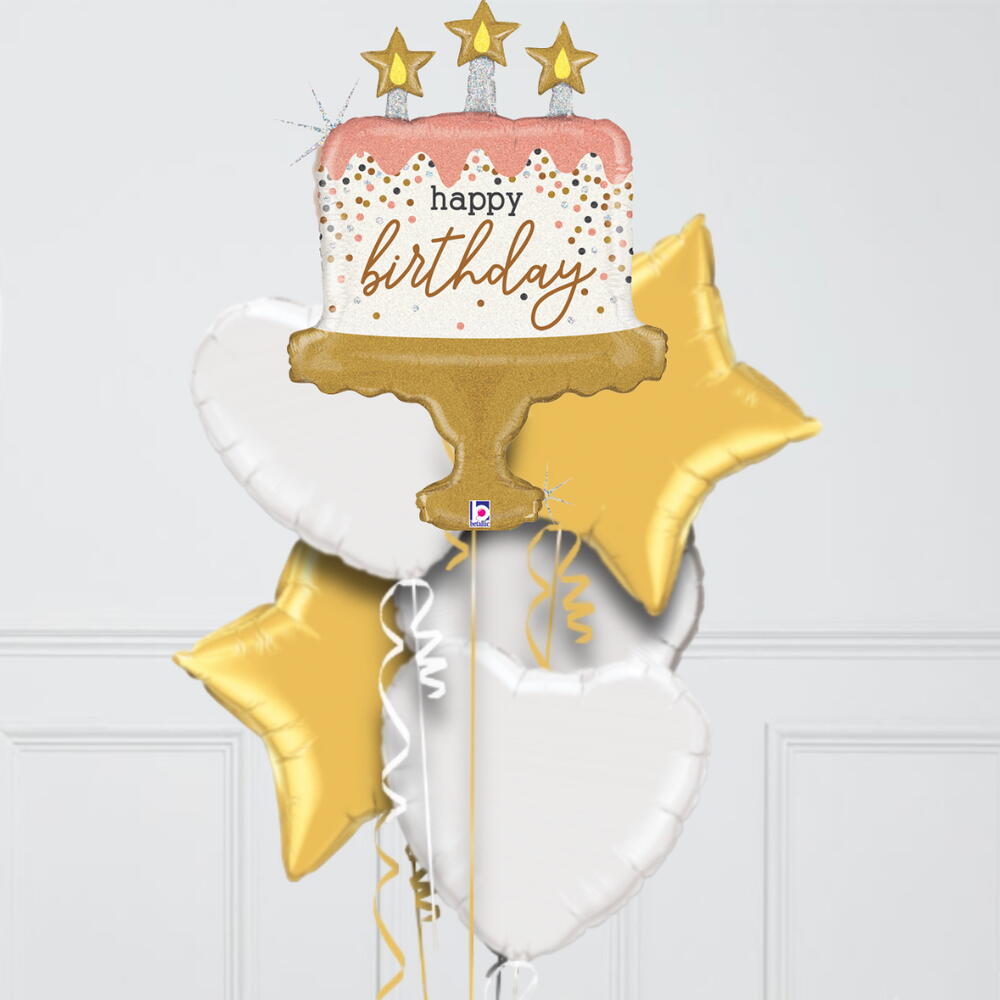 Birthday Cake Confetti Foil Balloon Bouquet 6 Pcs