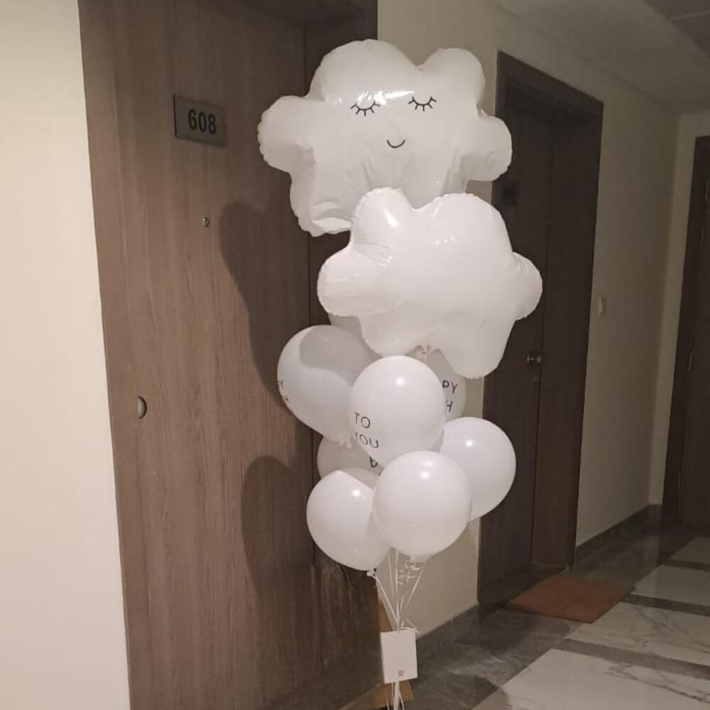 •Balloons clouds 11pcs. •Will fly 3/5 days. •Depending on the temperature in your home or car, helium can expand. Subsequently, the balls may burst. To prevent this from happening, we pack them in large bags. We are not responsible for balloons that burst after the balloons have been delivered. •We deliver balloons in special packaging, sun protection, etc.