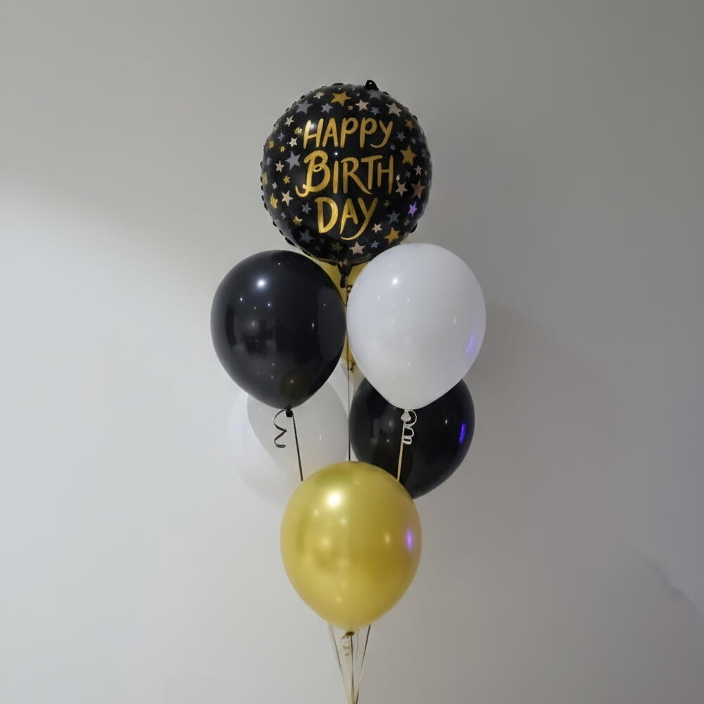 Light up their special day with our Elegant Birthday Candle Balloons bouquet! This sophisticated set features a festive Happy Birthday foil balloon adorned with colorful lit candles, perfectly complemented by a radiant mix of glossy gold, classic white, and matte black latex balloons. Ideal for adult birthdays, milestone celebrations, or adding a touch of glamour to any event. Shop premium helium balloons delivered for a truly dazzling celebration. Included: 1 x 18-inch round foil happy birthday balloon 2 x white latex balloons 12 each 2 x gold latex balloons 12 each 2 x black latex balloons 12 each