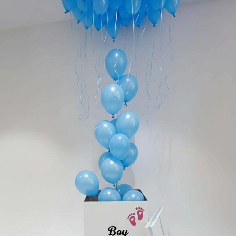 Gender Reveal Box – Blue or Pink Theme 💙💗 Make your big reveal unforgettable with our beautifully decorated Gender Reveal Box, filled with a mix of blue or pink balloons — ready to burst with excitement! 🎈 Includes: 30 to 35 mini 5” balloons 10 to 12 standard 12” balloons Customizable Blue or Pink color theme ⏱️ Helium Duration: 5” balloons: 3 to 5 hours 12” balloons: 8 to 12 hours Perfect for photos, videos, and surprise moments — simply open the lid and let the balloons float up to reveal your baby’s gender in the sweetest way!