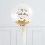 Our confetti personalised balloon is guaranteed to deliver the wow factor no matter your celebrations. This customised balloon is filled with gold confetti. All of our personalised bubble balloons arrive weighted and ready to be enjoyed.