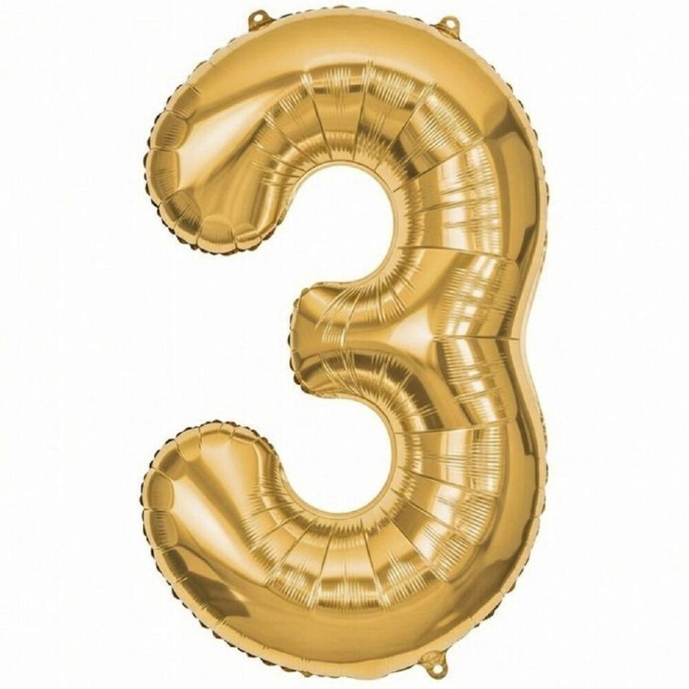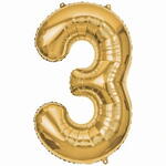 Gold Foil Number Three Balloon (Helium‑Filled)