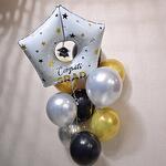 Celebrate the milestone with this perfect graduation balloon set! Featuring a star-shaped foil balloon with Congrats GRAD and 12 latex balloons in gold, silver, and black, this set is designed to add vibrance and excitement to the occasion.