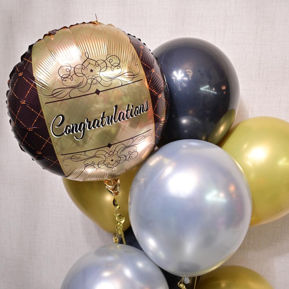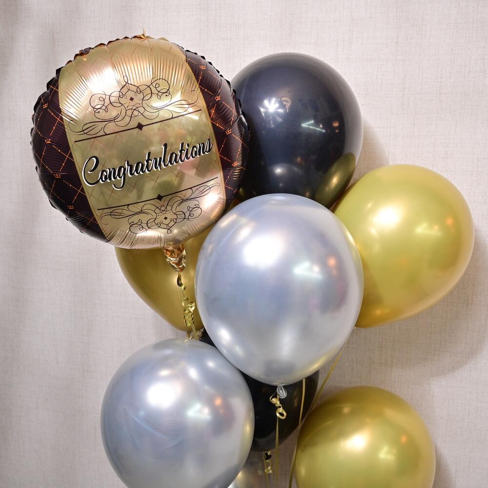 Celebrate this special milestone with our Graduation Balloon Set, featuring a perfect mix of 12 vibrant latex balloons and 1 stunning foil balloon. The latex balloons come in black, gold, and silver shades, and the foil balloon proudly displays a Congratulations design. All balloons are filled with helium for a floating, festive effect. Weight attached at the bottom to ensure stability and prevent the balloons from floating away. Foil balloon lasts 8-10 hours, maintaining its beauty throughout the celebration. Latex balloons last 6-8 hours, ensuring your event is filled with vibrant joy for hours.