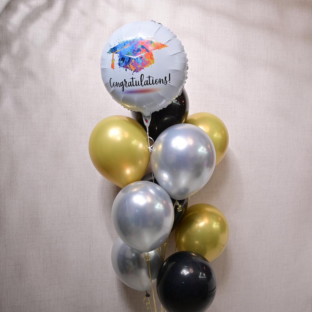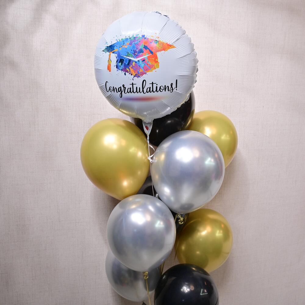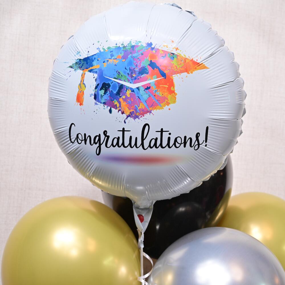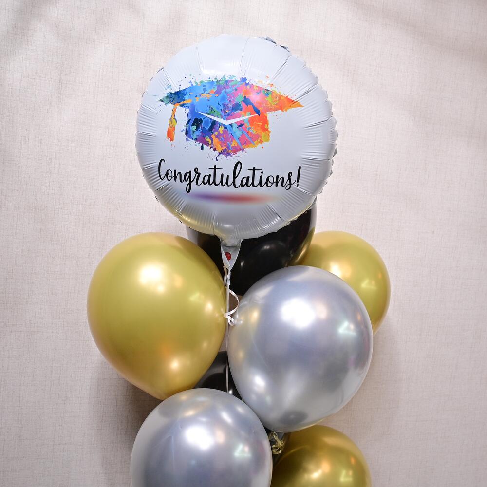 Celebrate your big achievement with this elegant Graduation Celebration Balloon Set, ideal for graduations, promotions, or any milestone worth commemorating. The vibrant colors and celebratory designs are sure to make your special day even more memorable. All balloons will be filled with helium and weight in the bottom’ Foil balloon will last 8-10 hours Latex will last 6-8 hours
