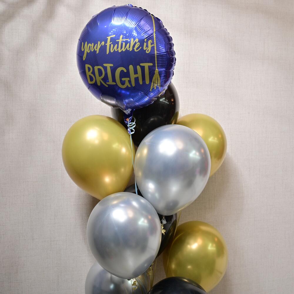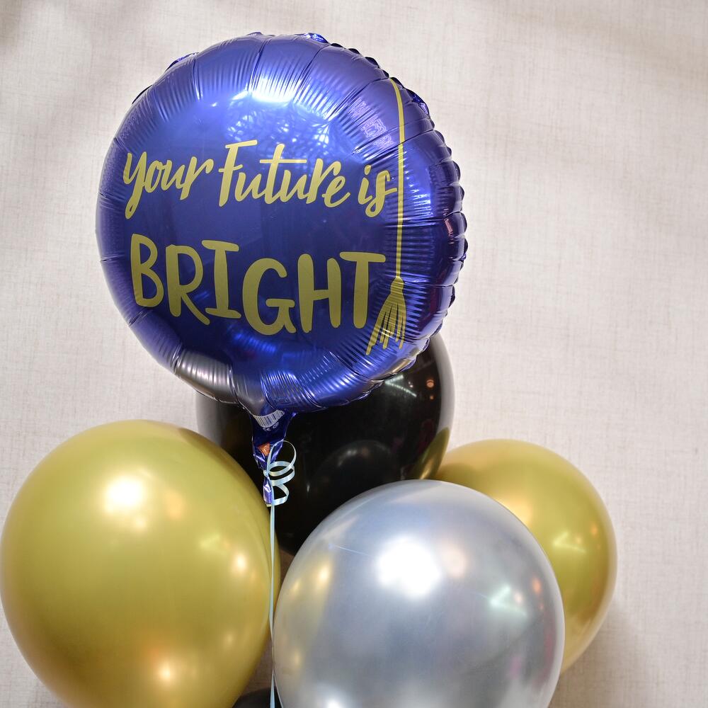 Celebrate your graduation in style with the Graduation Future is Bright Balloon Set. This beautiful balloon arrangement includes a mix of shiny latex and foil balloons, perfect for adding an extra touch of festivity to your special day. All balloons will be filled with helium and weight in the bottom’ Foil balloon will last 8-10 hours Latex will last 6-8 hours