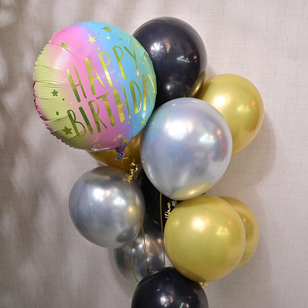 Celebrate that special day with this Happy Birthday Balloon Set, designed to bring joy and color to any birthday party. The set features a vibrant mix of latex balloons and a foil Happy Birthday balloon to make the occasion truly memorable. All balloons are filled with helium and come with a weight for stability. Foil balloon lasts 8-10 hours Latex balloons last 6-8 hours