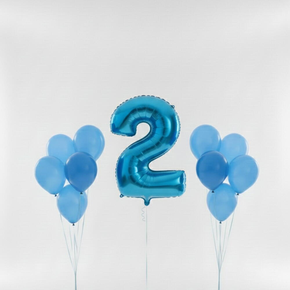 Create a stunning birthday decoration with this blue number balloon set, ideal for celebrations from age 2 up to 20. The set features one 40-inch blue number foil balloon (number of your choice) along with 10 pieces of 12-inch coordinating latex balloons, perfect for a complete party look. Ideal for birthday events, photo setups, and themed décor.