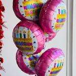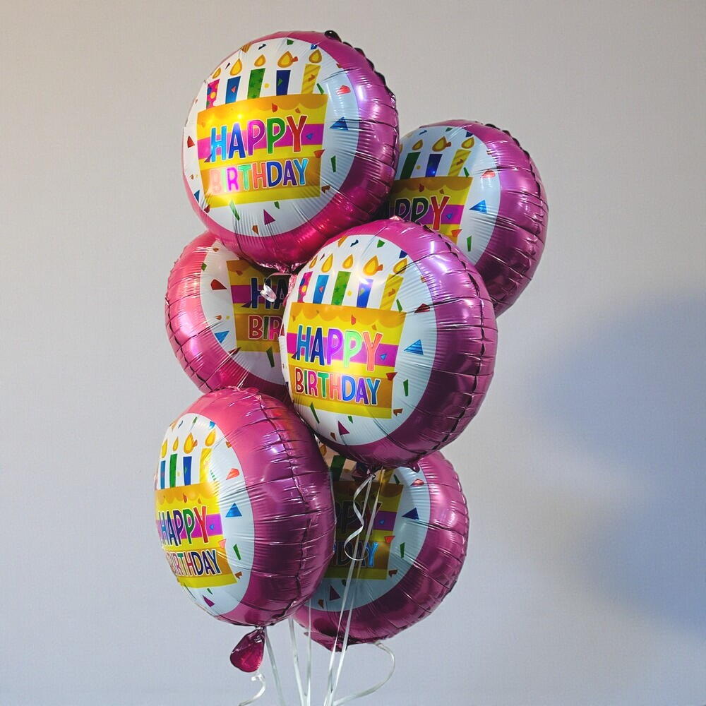 A Bunch of Six pieces Happy Birthday Foil Balloon ( Product designs will depend on availability. Helium balloons will last a maximum of 6 hours.)