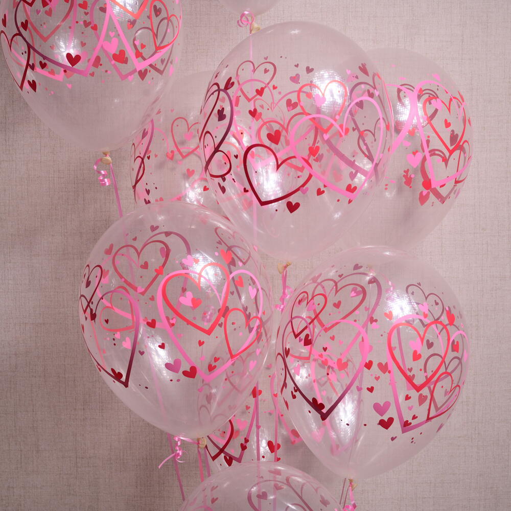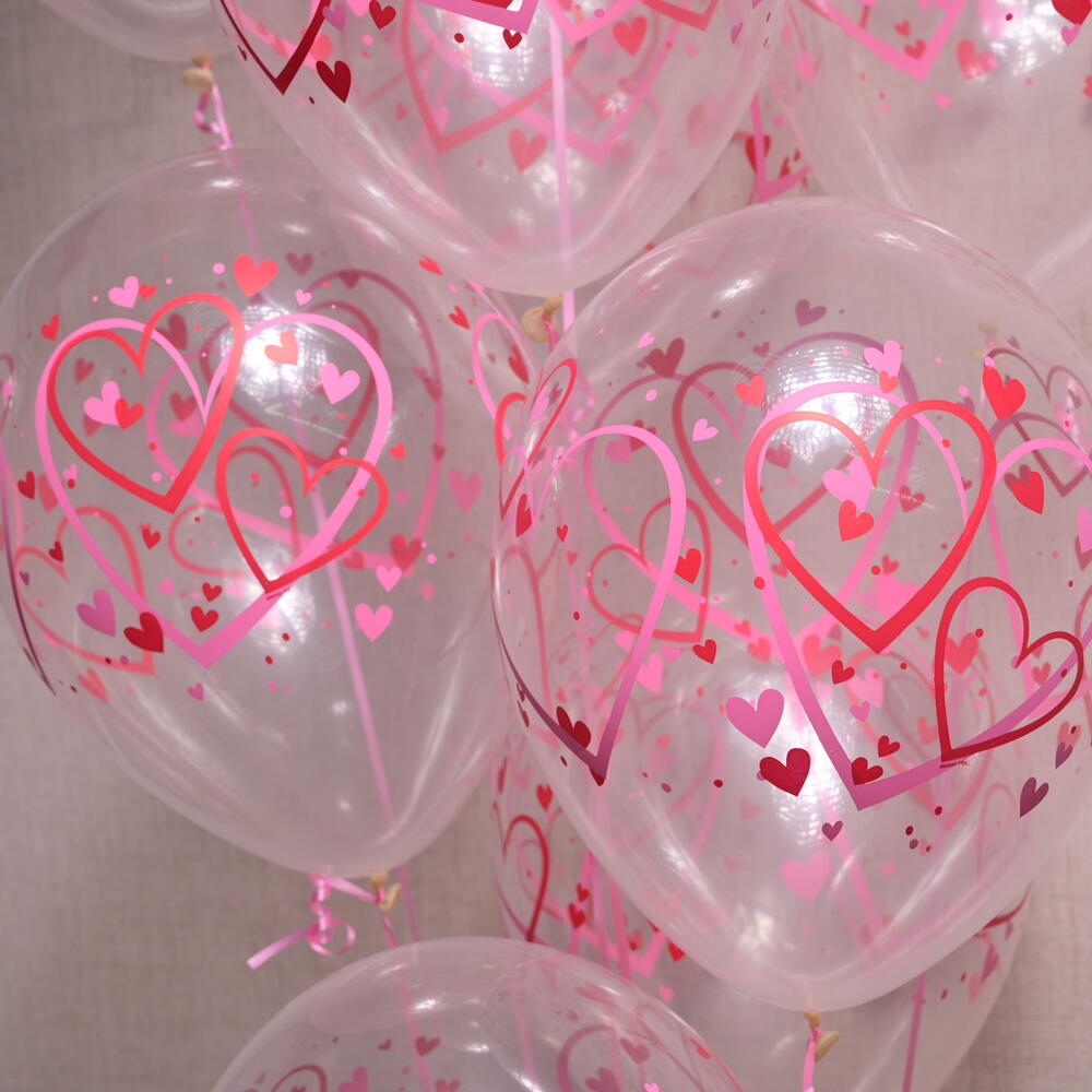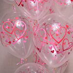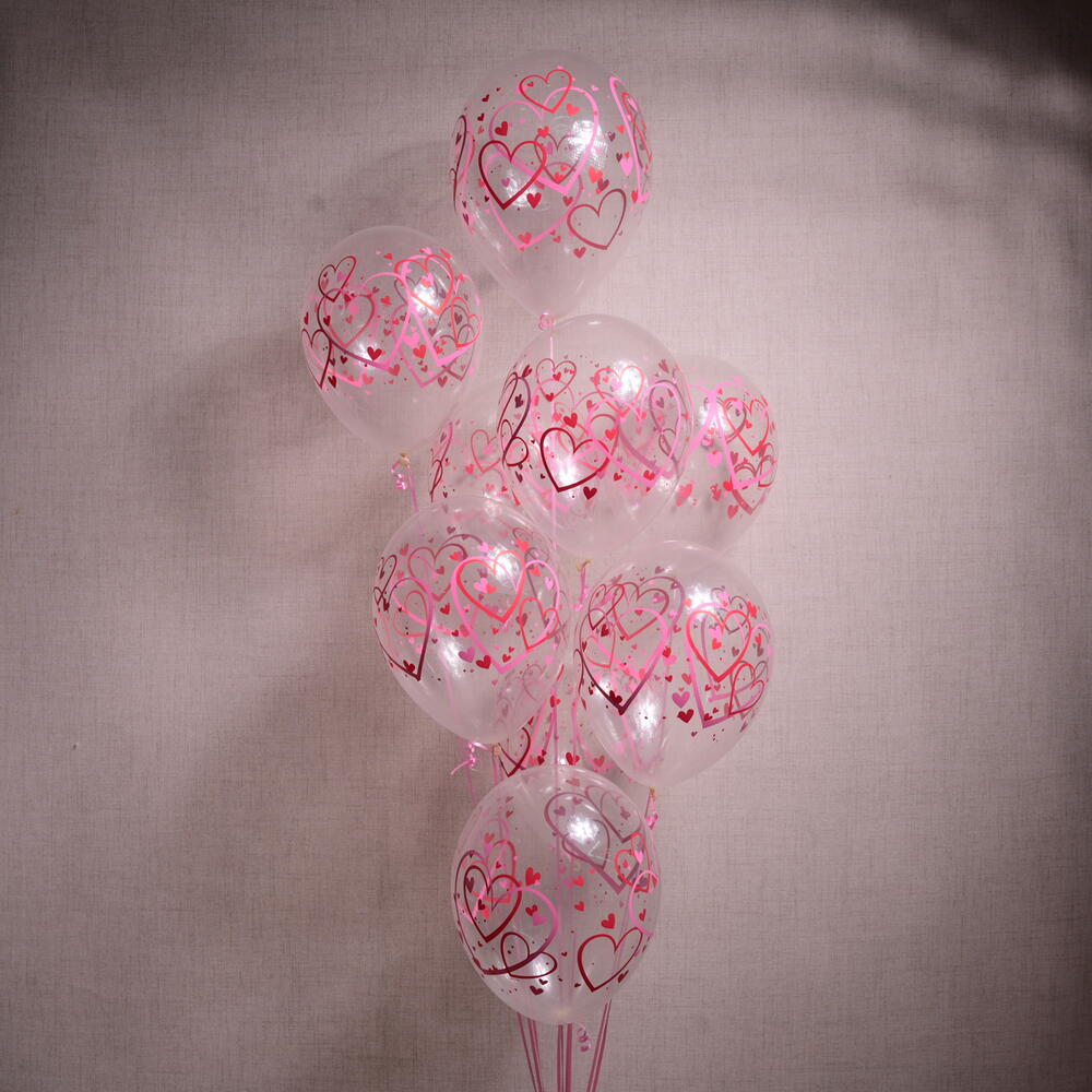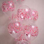 Celebrate love and affection with our Heart Printed Balloon Bouquet. This set includes 11 transparent balloons, each adorned with pink and red heart patterns, making it perfect for romantic occasions like anniversaries, Valentines Day, or any special celebration of love.