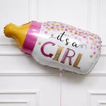 Cute bottle shape balloon perfect for baby girl welcome and baby shower decoration. Helium filled balloon lasts approximately 8 to 10 hours.