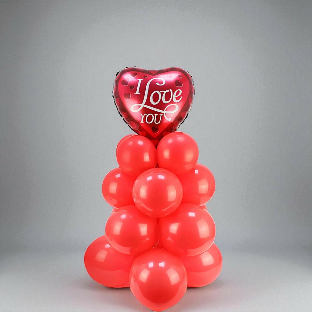 I Love you Balloons Arrangement 20 Red Latex Balloons I Love You Foil Balloon Approx Height : 100 - 120cms Depending upon placement Balloons will stay afloat upto 8 Hours
