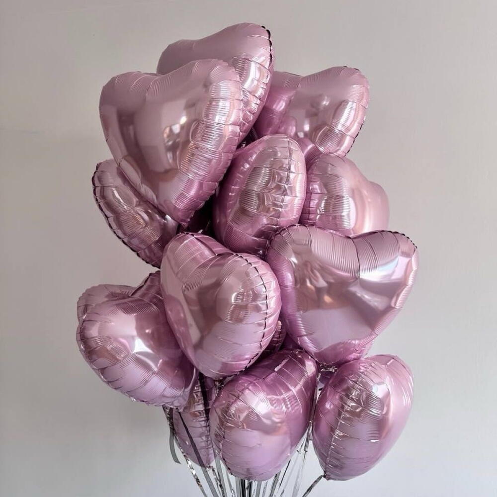 15 Pink heart foil balloons filled with helium