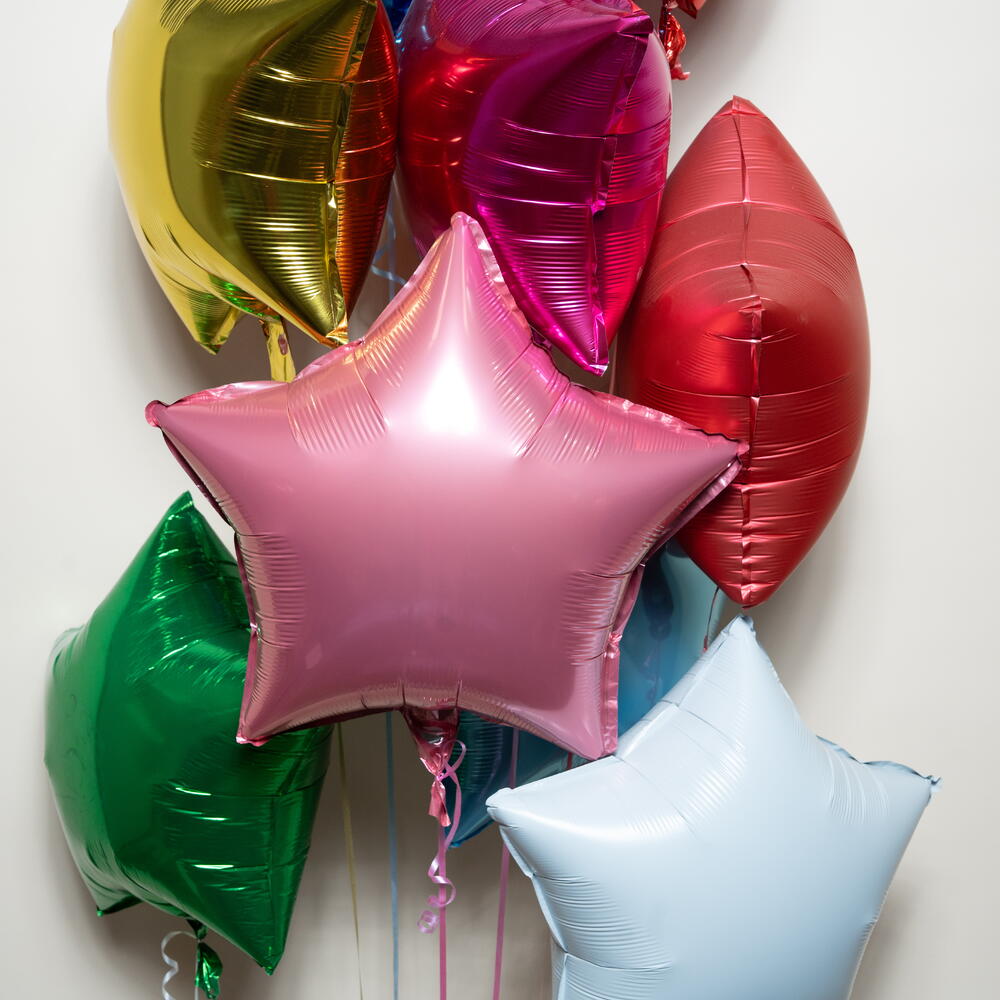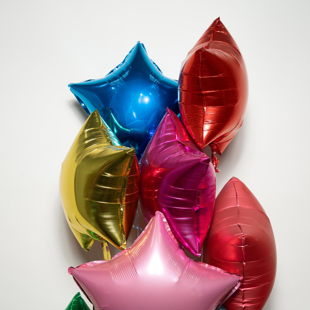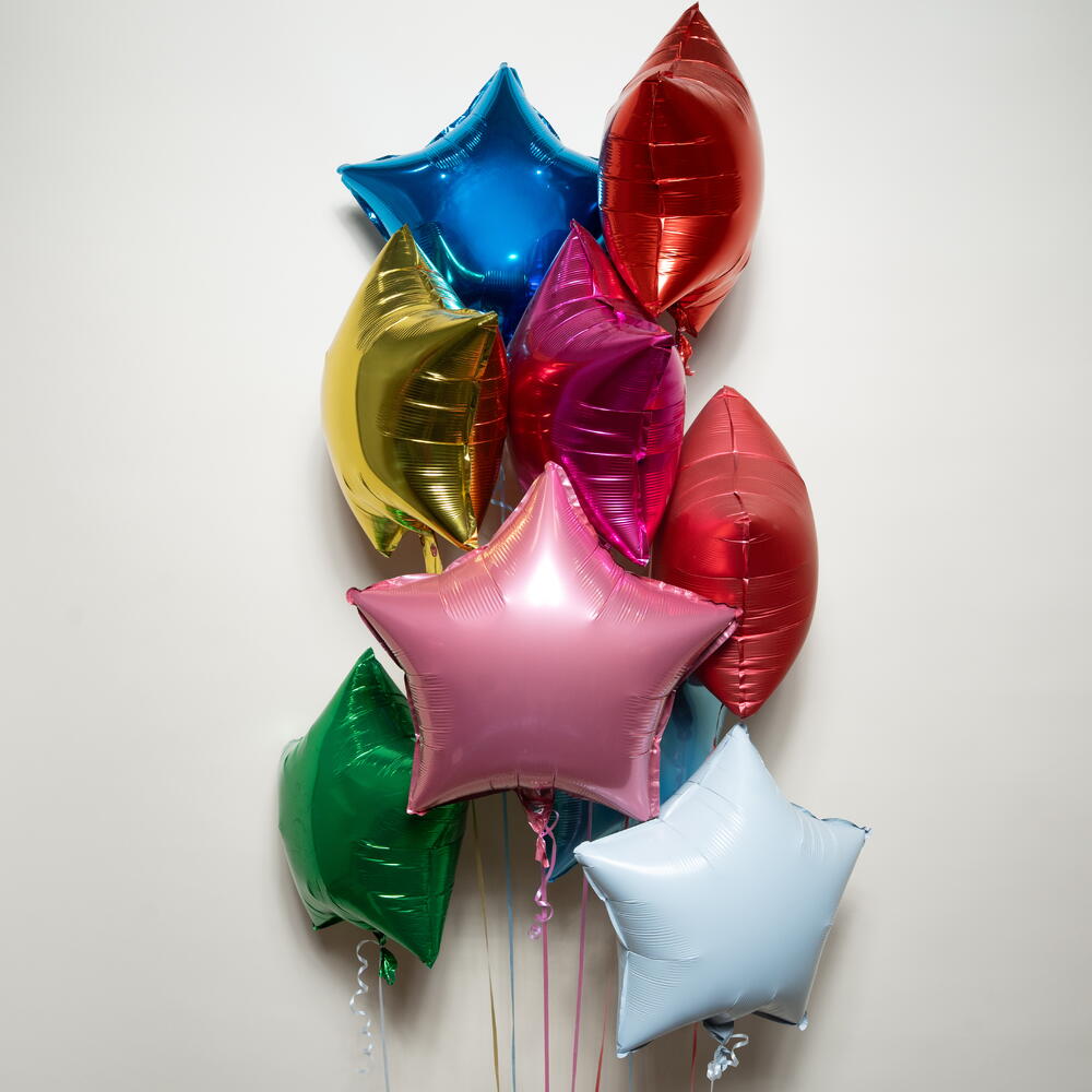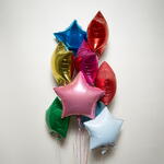 9 Star Foil Balloon Set featuring a vibrant mix of blue, red, green, gold, pink, hot pink, matte red, and white star balloons, perfect for birthdays, kids’ parties, baby showers, anniversaries, and celebrations. This colorful star balloon pairing adds instant brightness to rooms, backdrops, and photo moments. Total 9 foil balloons included, offering a fun and eye-catching party setup with a helium float time of approximately 8–10 hours 🎈⭐