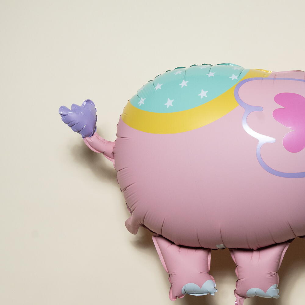 Delight your guests with this enchanting Pink Circus Elephant foil balloon, designed to bring smiles and playful charm to any celebration. Featuring an adorable pastel pink elephant with rosy cheeks, a cheerful expression, and a colorful circus party hat, this balloon is perfect for kids’ birthdays, baby showers, circus or carnival-themed parties, and fun-filled celebrations. Made from high-quality foil material, the balloon has a smooth, glossy finish and vibrant printed details that stand out beautifully. It is professionally filled with helium and includes a matching ribbon with a weighted base, allowing it to float gracefully while staying securely in place. The balloon will be filled with helium and comes with a weight at the bottom to keep it securely in place. Once inflated, the helium balloon will float for approximately 8–10 hours, making it ideal for same-day events and celebrations.