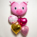Pink Pig Theme Happy Birthday Foil Balloon Set 7370