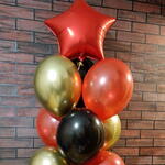 1 Red star foil helium balloon 4 Red latex helium balloon 3 Black latex helium balloon 3 Gold latex helium balloon