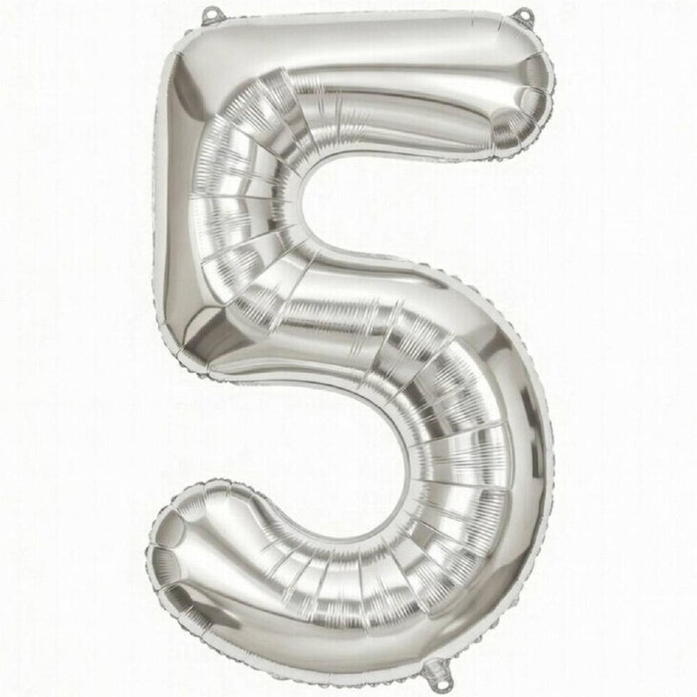 Silver Foil Number Five Balloon (Helium‑Filled)