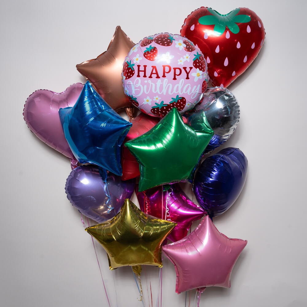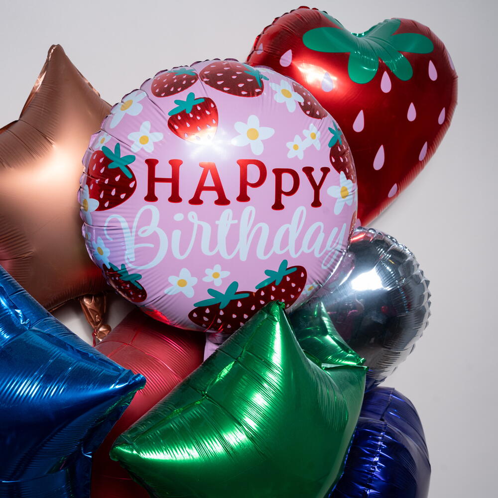 Celebrate birthdays sweetly with this Strawberry Theme Happy Birthday Foil Balloon Set, which includes 13 premium foil balloons: 1 round Happy Birthday strawberry balloon, 1 strawberry heart-shaped foil balloon, 4 heart foil balloons, and 7 star-shaped foil balloons. Designed in bright strawberry-inspired colors with shiny hearts and stars, this set is perfect for kids’ birthdays, girls’ parties, and cheerful birthday decorations. All balloons offer a helium float time of approximately 8–10 hours, making them ideal for same-day events, birthday parties, surprise setups, and joyful celebrations. This strawberry birthday balloon set includes hearts and stars foil balloons suitable for helium filling, party décor, home celebrations, and photo backdrops, creating a vibrant and eye-catching balloon bouquet.