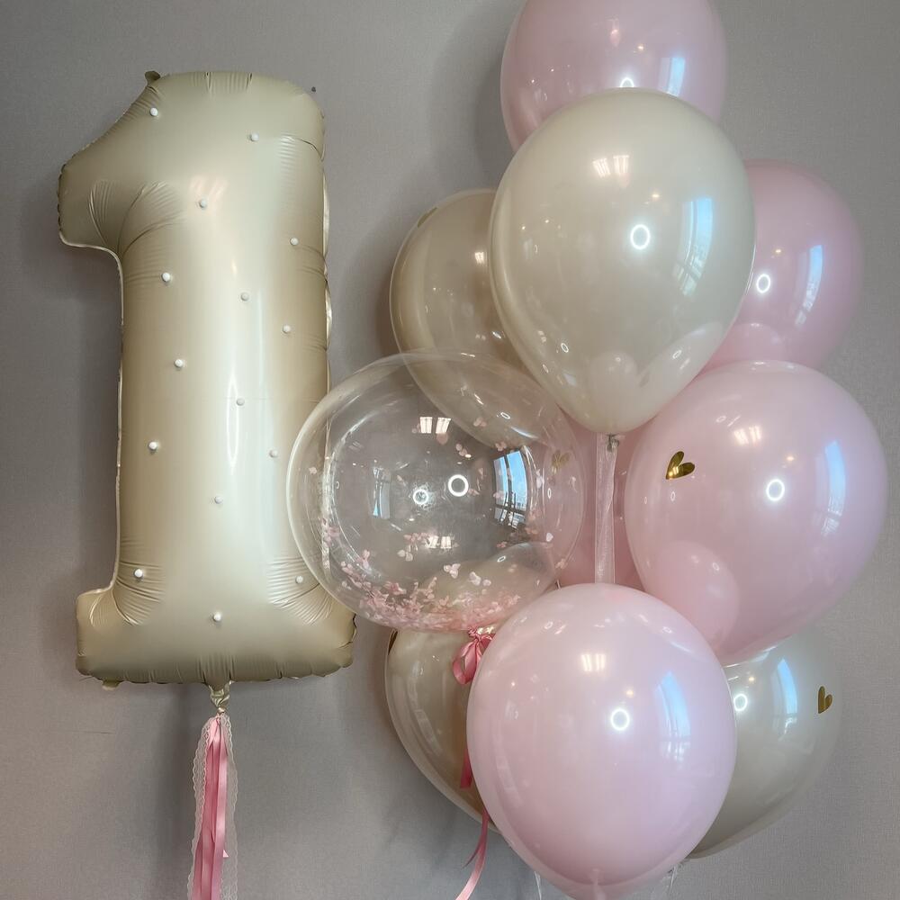 - 9 double stuffed balloons - 1 balloon with flowers inside - number balloon