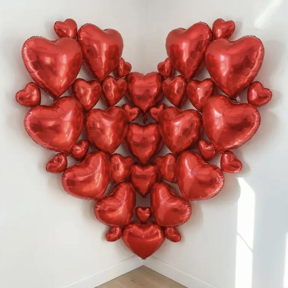 Create a bold and romantic Valentine’s Day statement with our heart foil balloon wall setup, designed as a stunning photo wall and photo booth backdrop. Made using premium red heart-shaped foil balloons arranged into an eye-catching heart formation, this décor is perfect for feature walls, corners, photo backdrops, homes, retail shops, proposals, and Valentine’s Day events. The setup adds instant visual impact and creates a beautiful, Instagram-worthy photo spot. Fully customizable based on wall size and layout. Final pricing may vary depending on size and balloon coverage required.