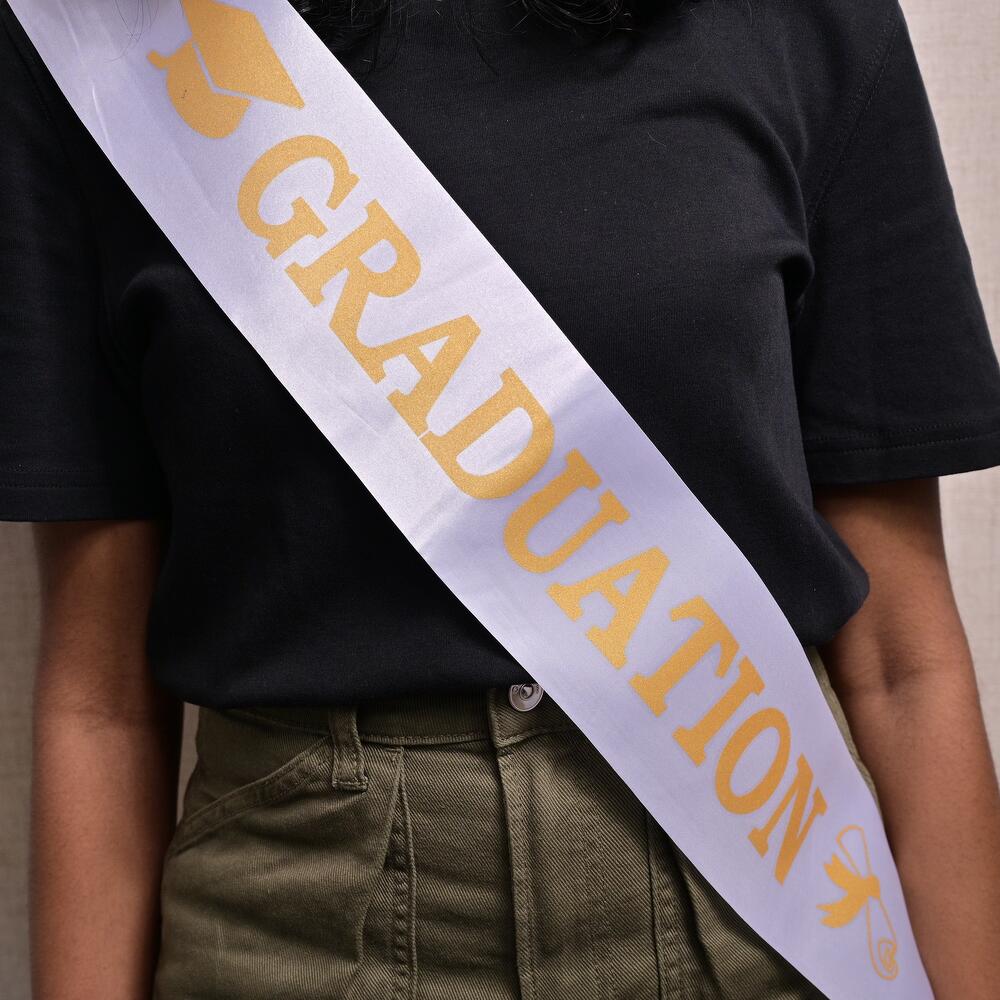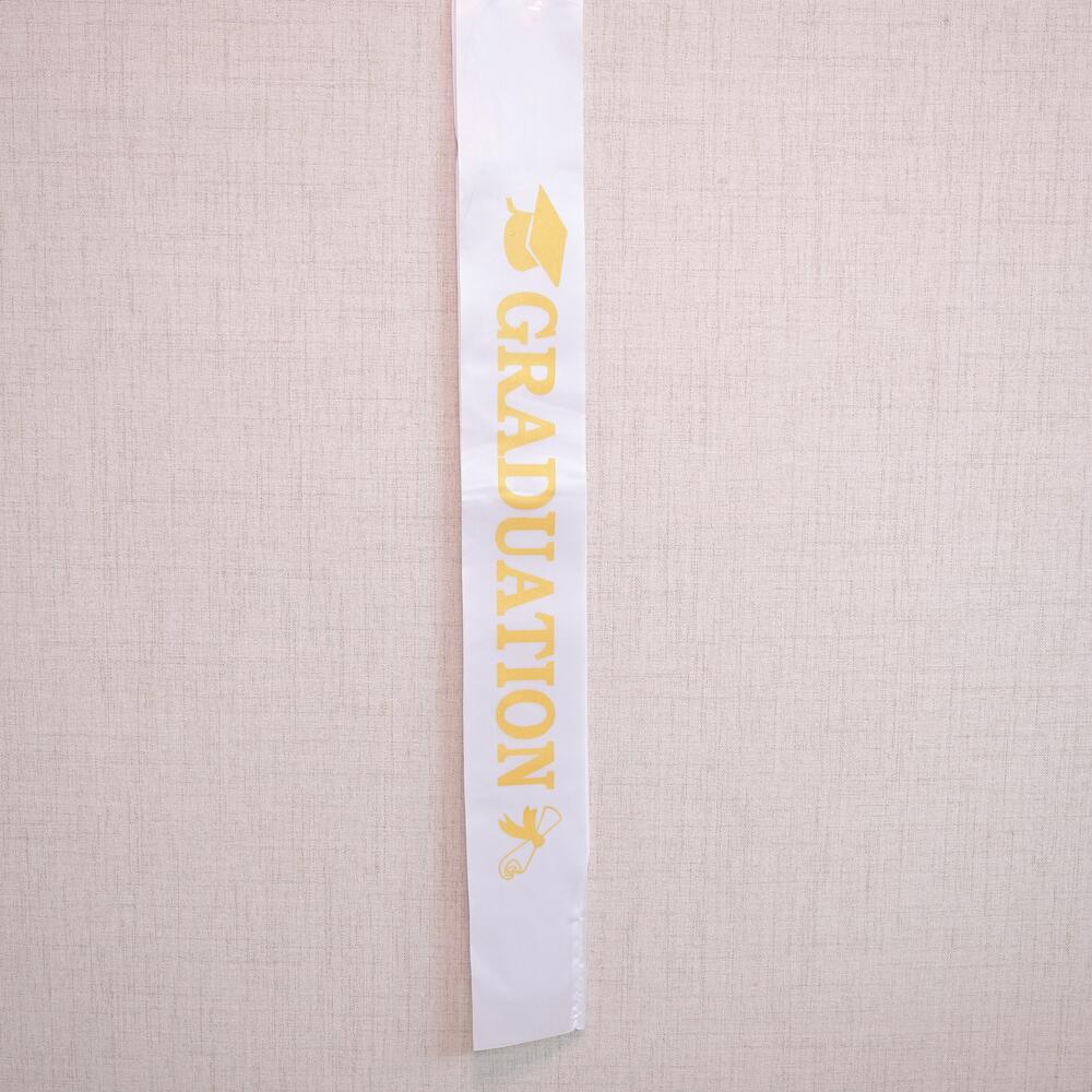Celebrate your achievement in style with this Graduation Sash, designed to add a touch of elegance to your graduation day. The sash is made from high-quality material with bold gold lettering, making it a perfect accessory to wear with your graduation outfit.