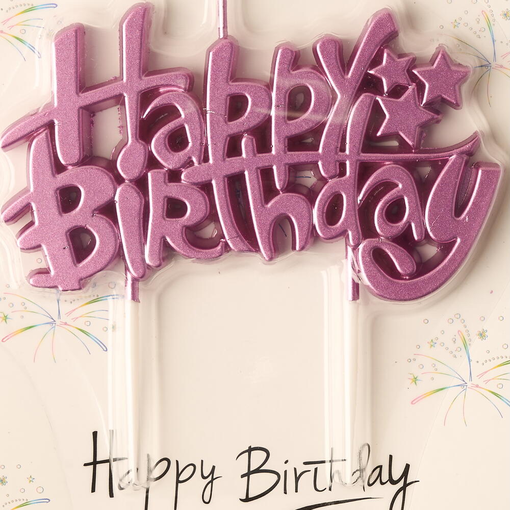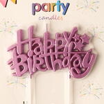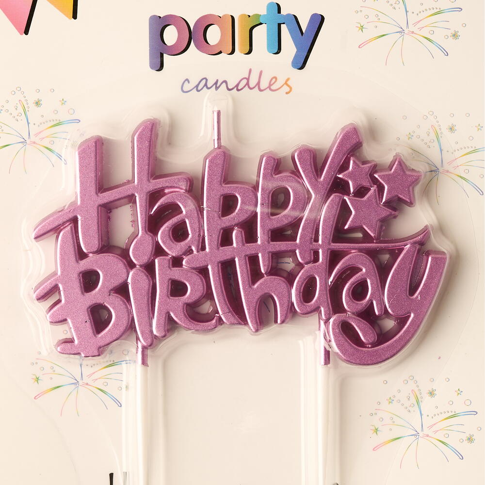 Happy Birthday Full Word Elegant Candle Cake Topper in Metallic Pink Color.