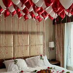 ● It contains 20 Red heart helium foil balloons , 20 silver heart foil balloons on the ceiling. and Heart of the rose stems on the bed with candles. ● Create unforgettable moments. Contact us for your special room decoration.