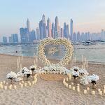 candles - 20 pcs heart arrangement base with artificial flowers - 1 pcs candle stands - 4 pcs sign will you merry me - 1 pcs