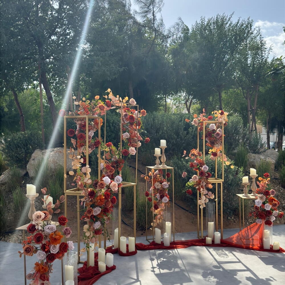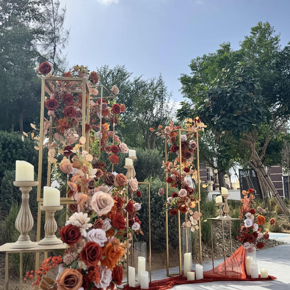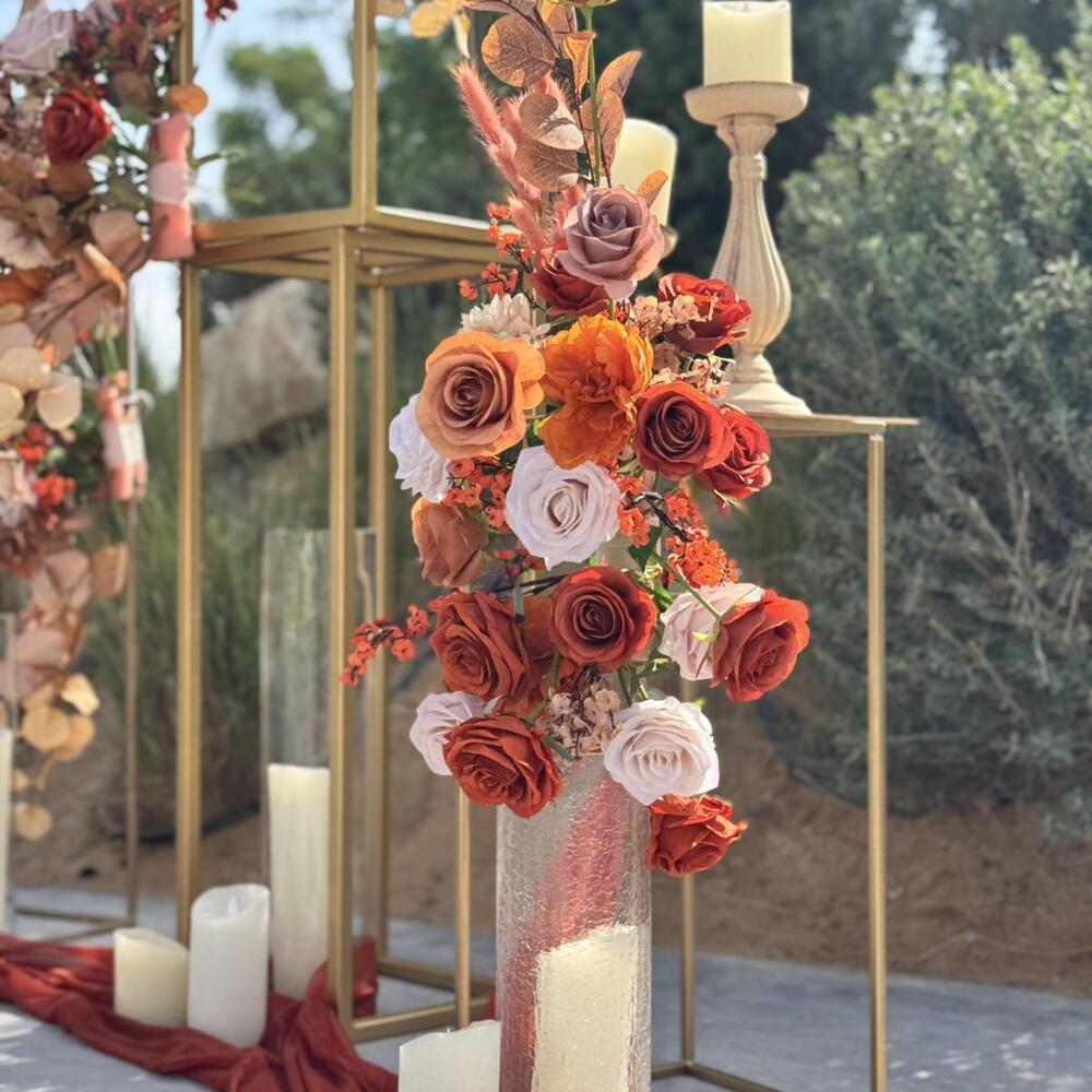 lagurus - 30 pcs candles - 25 pcs dry flowers - 220 pcs fabric - 2 pcs candlesticks - 9 pcs artificial leaves - 50 pcs flower stands - 9 pcs artificial roses - 180 pcs