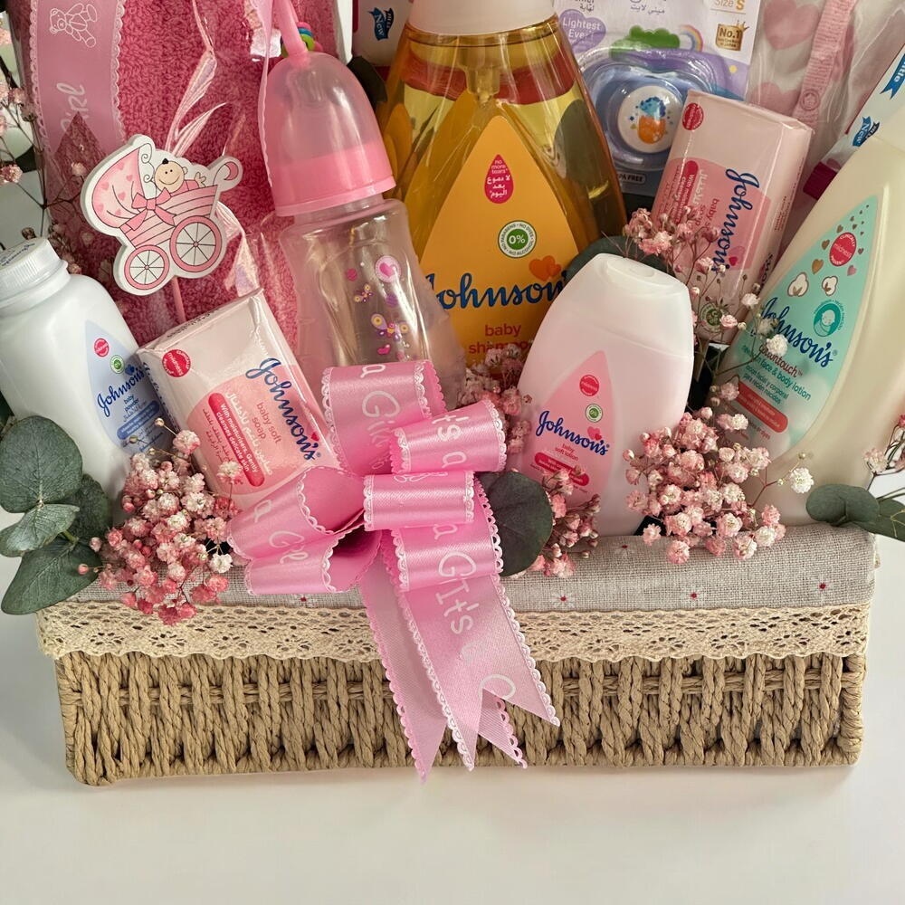 Welcome her to the world with our Luxury Baby Girl Hamper – Large, a charming wicker basket overflowing with newborn must‑haves and floral finesse. Thoughtfully curated for comfort, care, and celebration, this keepsake bundle turns first moments into lifetime memories. What’s Inside Item Qty Why It Matters Feeding Bottle 150 ml 1 BPA‑free for stress‑free feeding. Soft Bath Towel 1 Gentle against newborn skin. Baby Girl Outfit 1 pair Photo‑ready cuteness in pastel pink. Gentle Baby Soap 125 g 2 Dermatologist‑approved purity. Johnson’s Baby Shampoo 750 ml 1 Iconic “No More Tears” formula. Cotton Touch Face Body Lotion 400 ml 1 Feather‑light hydration. Johnson’s Soft Baby Lotion 100 ml 1 All‑day moisture on the go. Baby Powder 100 g 1 Keeps skin fresh and dry. Baby Wipes (Pack of 12) 1 Travel‑friendly cleanliness. Mini Light Pacifier 1 Soothing comfort anytime, anywhere. Finishing Touches Fresh Gypsophila Eucalyptus sprigs for a naturally sweet aroma. “It’s a Girl” tag stick, pastel ribbon foil balloon—ready for the camera. Reusable hand‑woven basket that doubles as nursery storage. Why Parents Love It Complete Care Kit: Covers bath, skin, feeding, and comfort in one elegant package. Premium Presentation: Arrives photo‑ready—no extra wrapping required. Same‑Day UAE Delivery: Place your order before 5 p.m. for instant doorstep joy. Gift the Luxury Baby Girl Hamper – Large today and shower the newest princess with love, comfort, and a touch of floral magic.