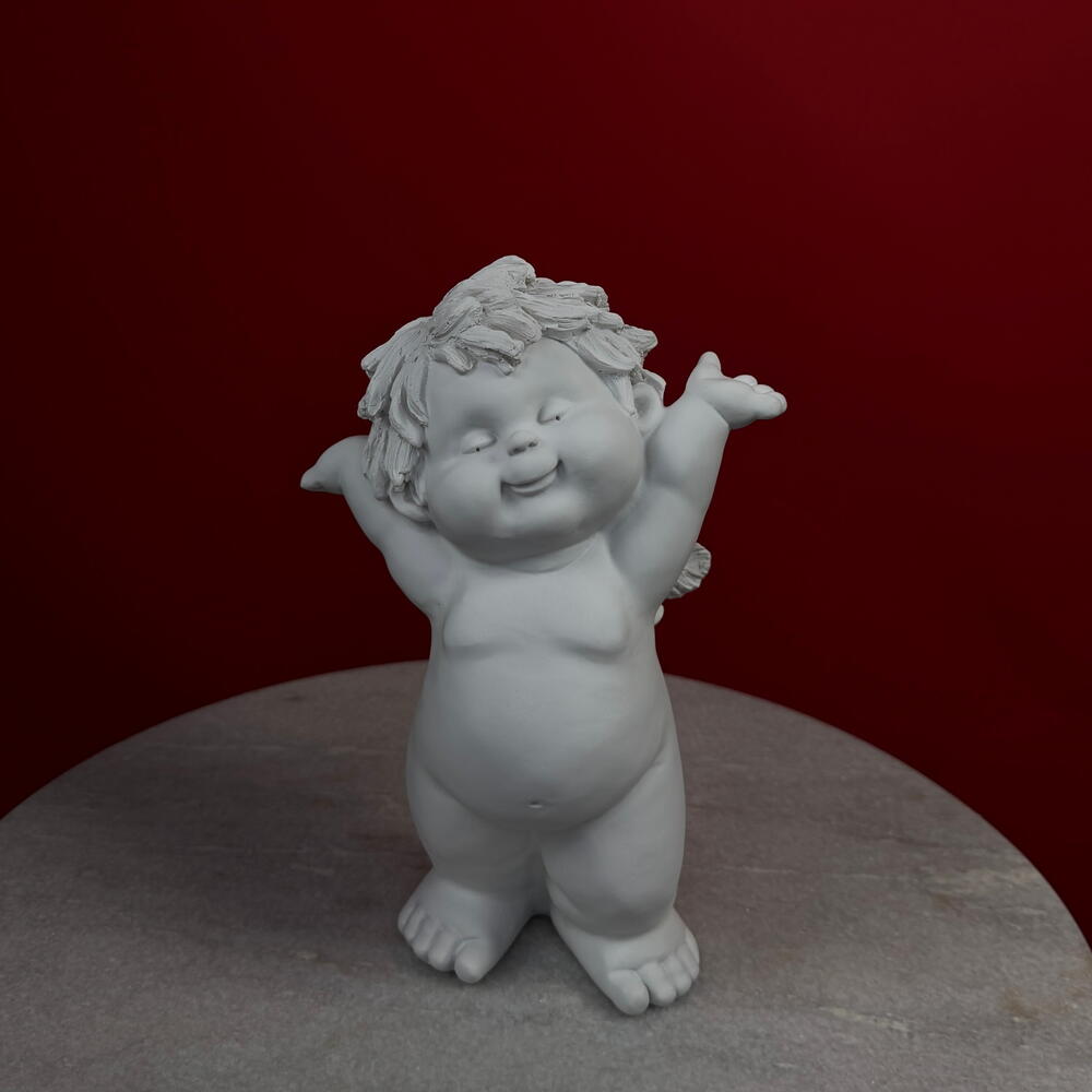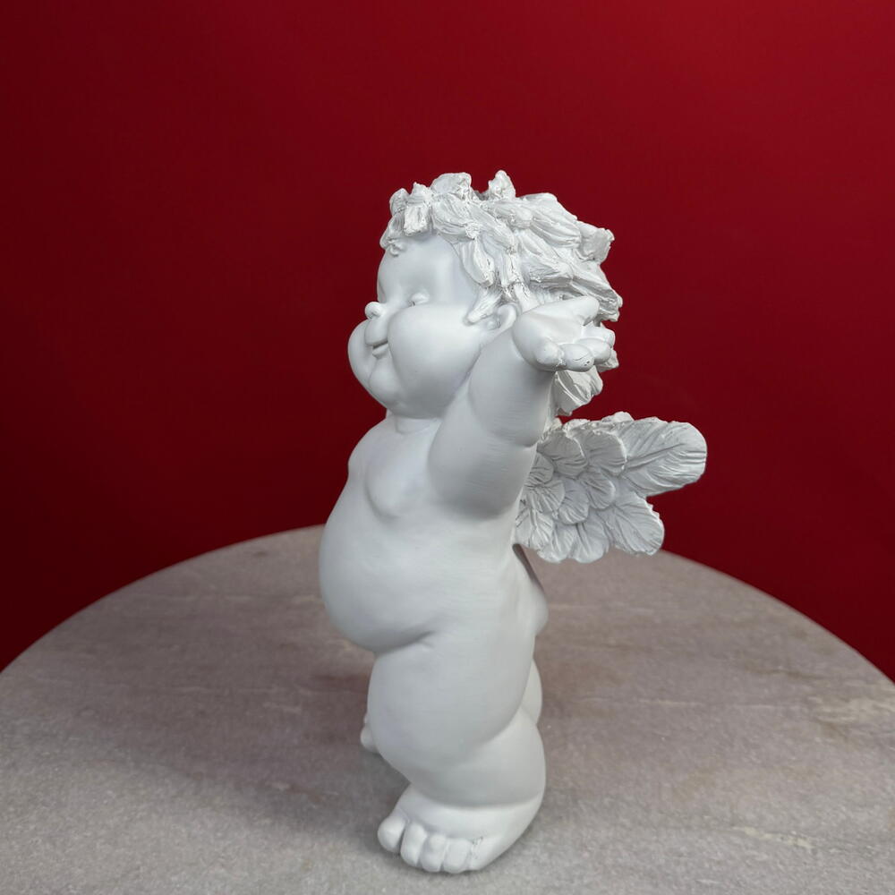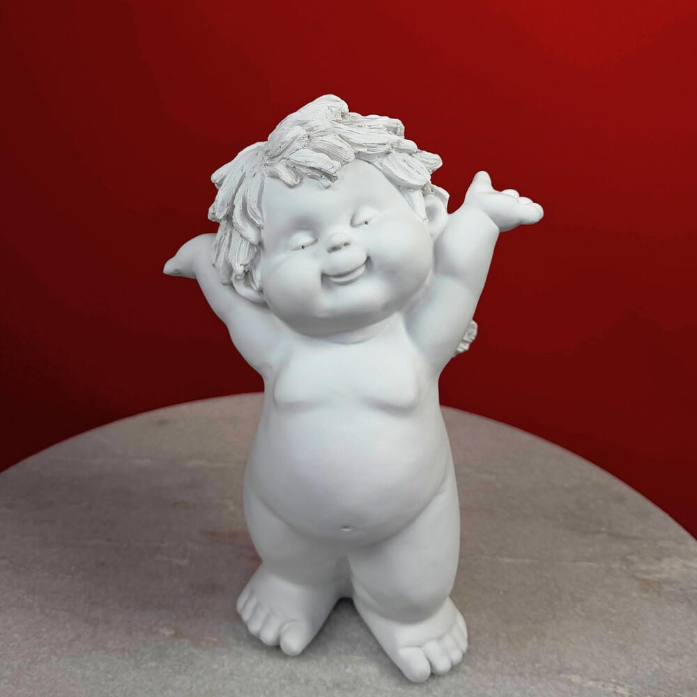 This exquisite piece captures the innocence and joy of a baby angel, depicted with her hands delightfully raised in the air—a pose symbolising wonder, praise, or playful exuberance. Crafted from smooth, high-quality ceramic, the ornament boasts a delicate, smooth finish that makes it a perfect accent for Christmas.