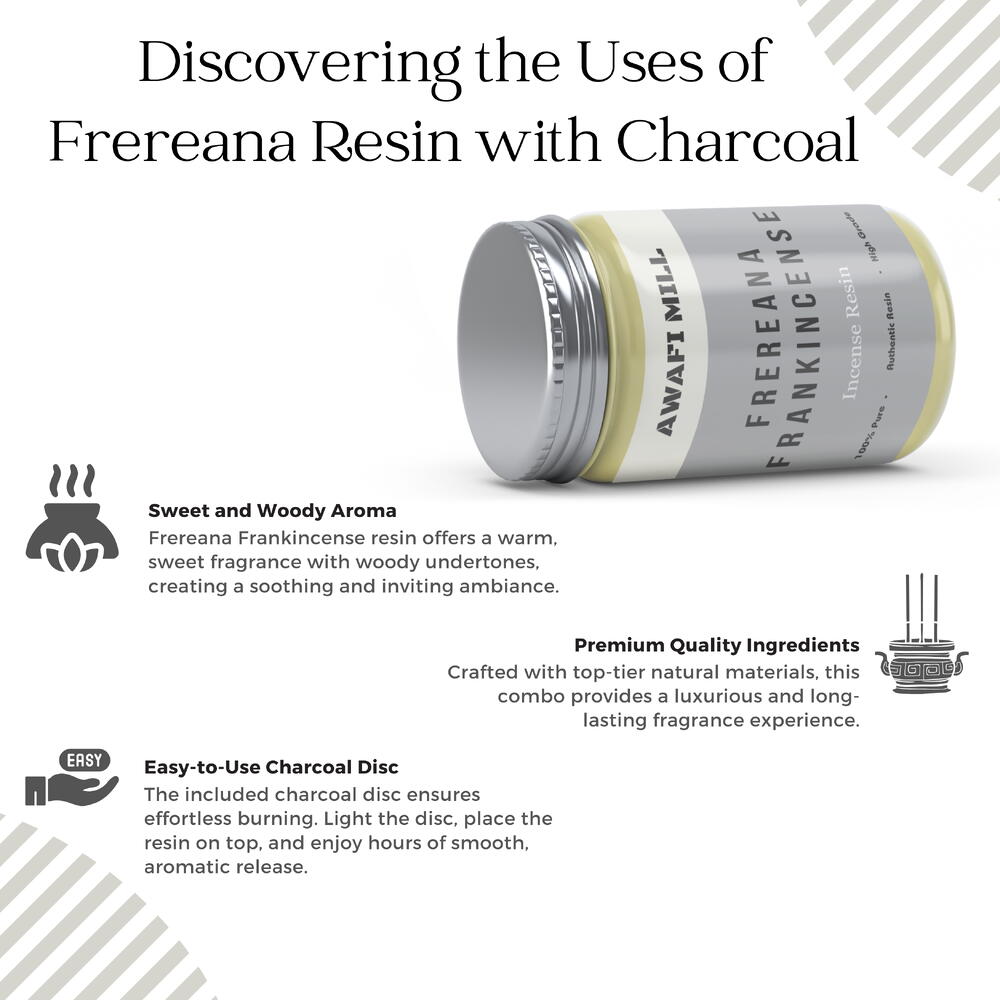 Perfect for enhancing meditation, relaxation, or creating a sacred ambiance Triangle charcoal tablet for easy and efficient burning, allowing for a steady release of fragrance Frereana frankincense resin, crafted from premium boswellia tree resin for a captivating aroma Each resinous piece exudes a rich and distinctive fragrance Boswellia resin, ensuring an authentic and uplifting aromatic experience