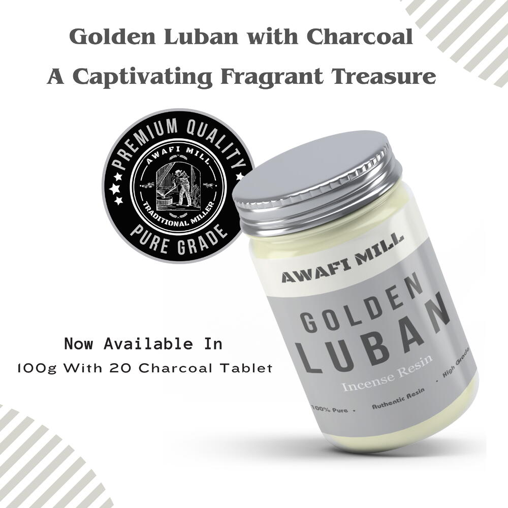 AWAFI MILL Golden Luban | Charcoal Tablet - Bottle of 100 Gram with 20 Charcoal Piece