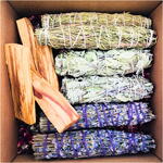Smudge set for a rejuvenating and refreshing experience. Begin your smudging ritual with white sage, known for its purifying and cleansing properties Experience the purification benefits of palo santo, adding a sacred and uplifting element to your ritual. Enjoy the tranquil aroma of lavender sage, combining the cleansing properties of sage with the calming essence of lavender. Infuse your space with the renewing energy of rosemary, contributing to a sense of vitality and rejuvenation.